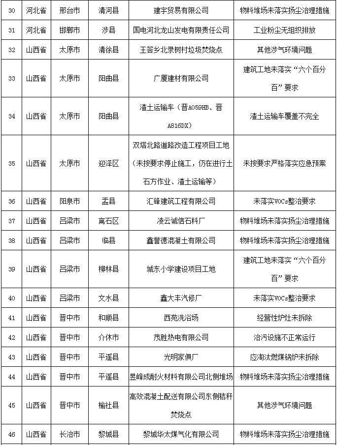 其中,河北省石家莊市元氏縣1家,保定涿州市1家;山西省臨汾市浮山縣1家、鄉(xiāng)寧縣1家;河南省安陽林州市3家,三門峽市盧氏縣1家;陜西省咸陽市渭城區(qū)1家,渭南市渭南高新技術(shù)產(chǎn)業(yè)開發(fā)區(qū)1家。
